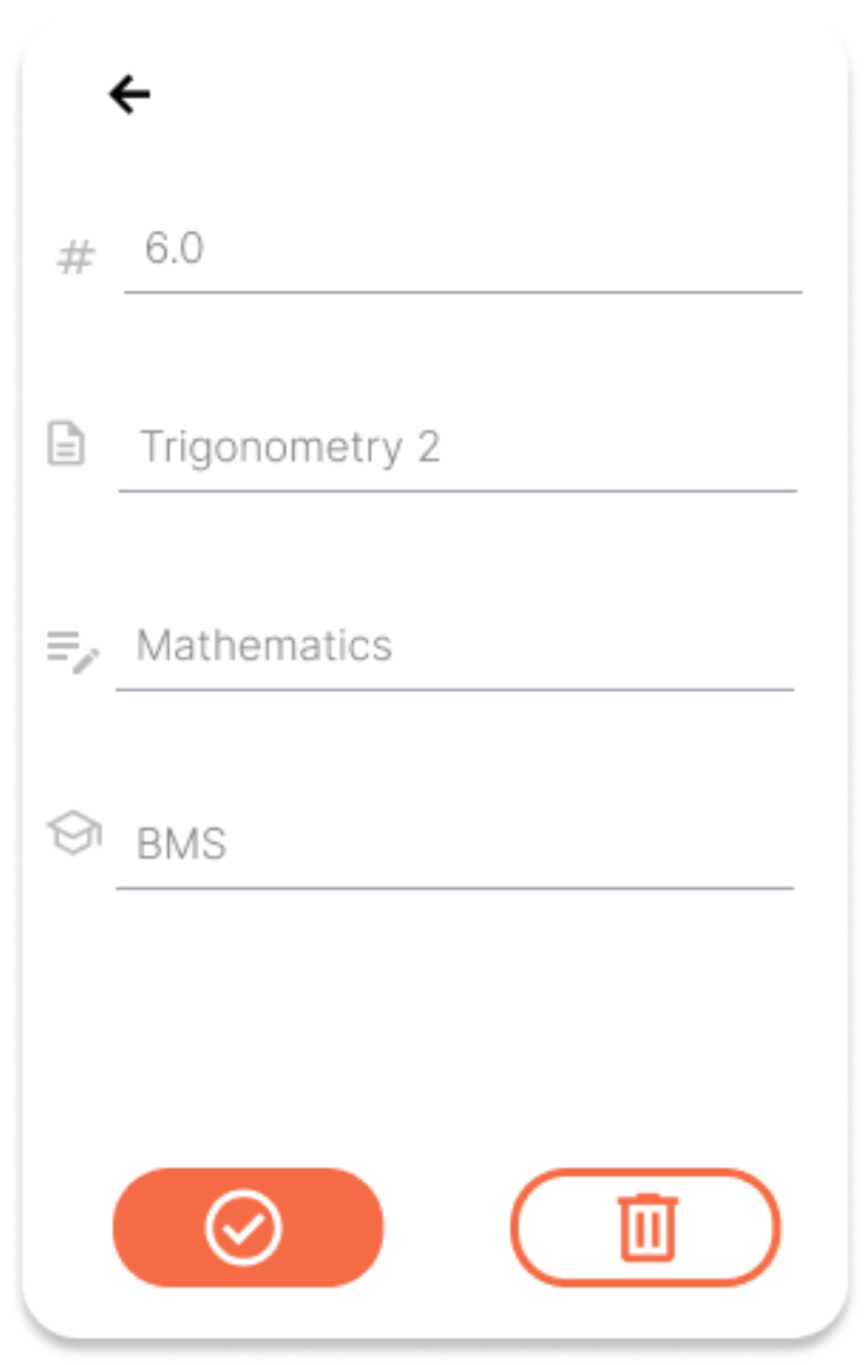 Users can edit recorded grades through this modal. The data of the grade to be edited is automatically filled in, and users can adjust any fields or delete the grade with the delete button.
