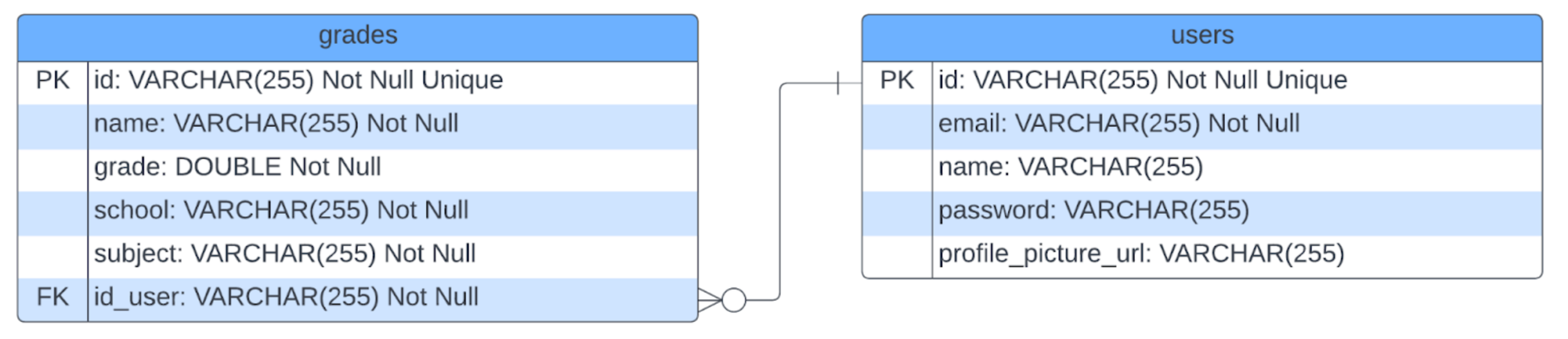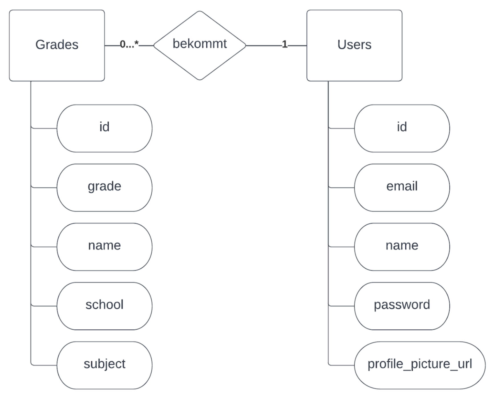 The ERM shows the relationship between Grades and Users, where multiple grades can belong to one user.